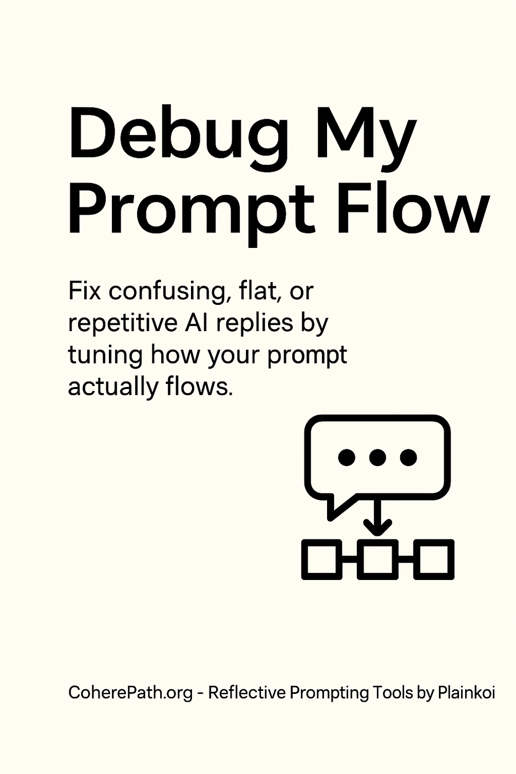 Get unstuck with AI in minutes. If your prompts look fine but the replies are looping, flat, or missing the point, the Debug My AI Prompt Flow Toolkit gives you 4 proven clarity tools to get things back on track. You’ll learn how to: Spot 5 common flow-breaking patterns Use AI to reflect your structure back to you Rewrite overloaded prompts into clear, step-by-step requests Reframe prompts as conversations for better engagement